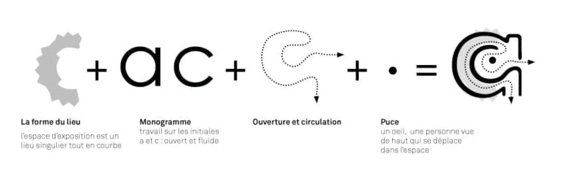 Travail sur les initiales A et C, simplifiées et intégrées dans un signe unique, compact et identifiable.