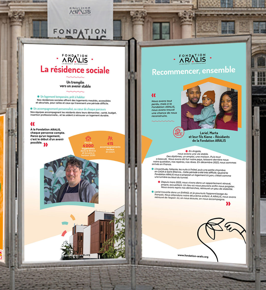 À l’occasion d’un événement de notoriété organisé place des Terreaux en septembre 2025, la Fondation ARALIS m’a confié la création de l’identité visuelle et de l’ensemble des supports de communication événementielle.